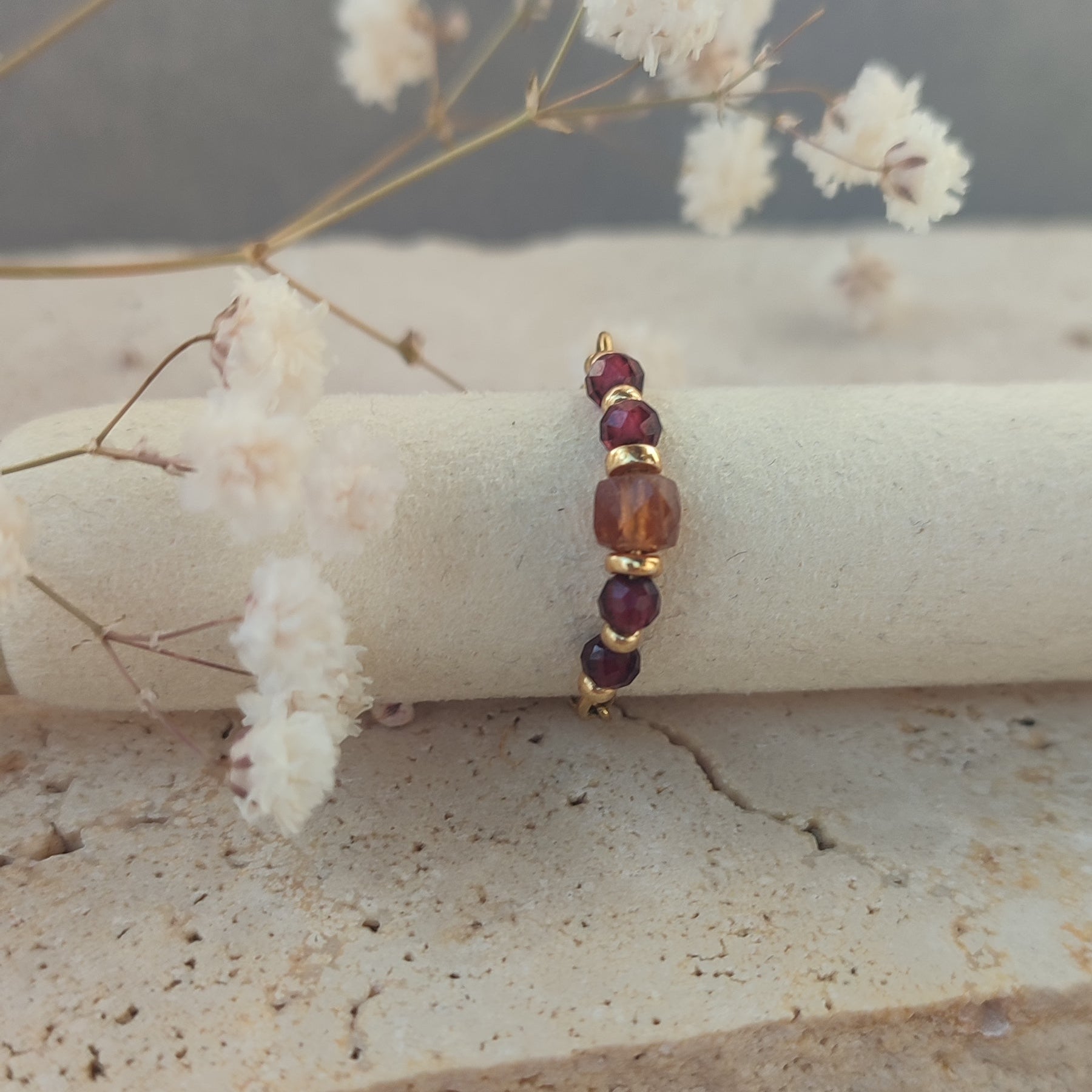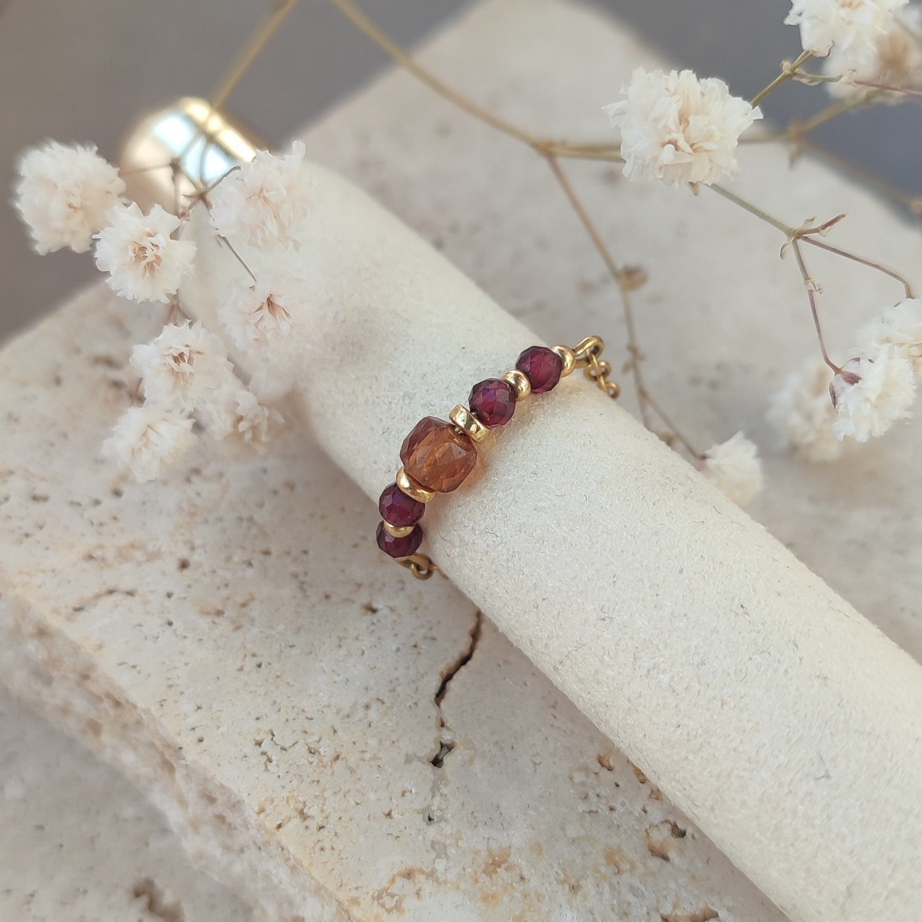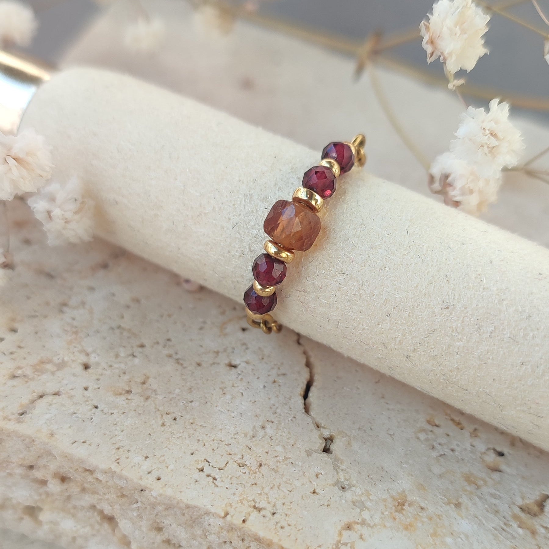 Pierres de grenat rouge rondes facetées et grenat orange cube