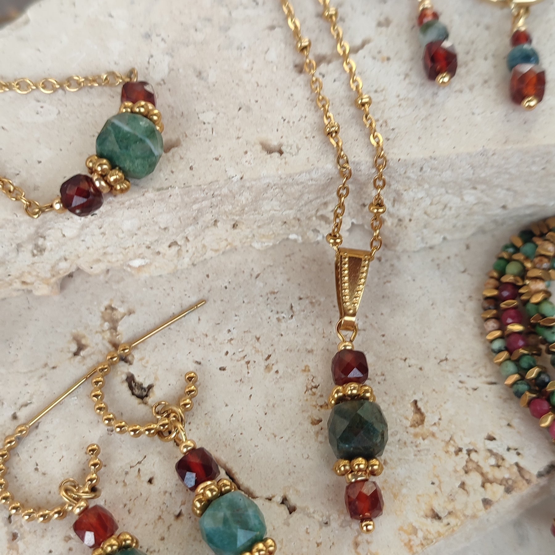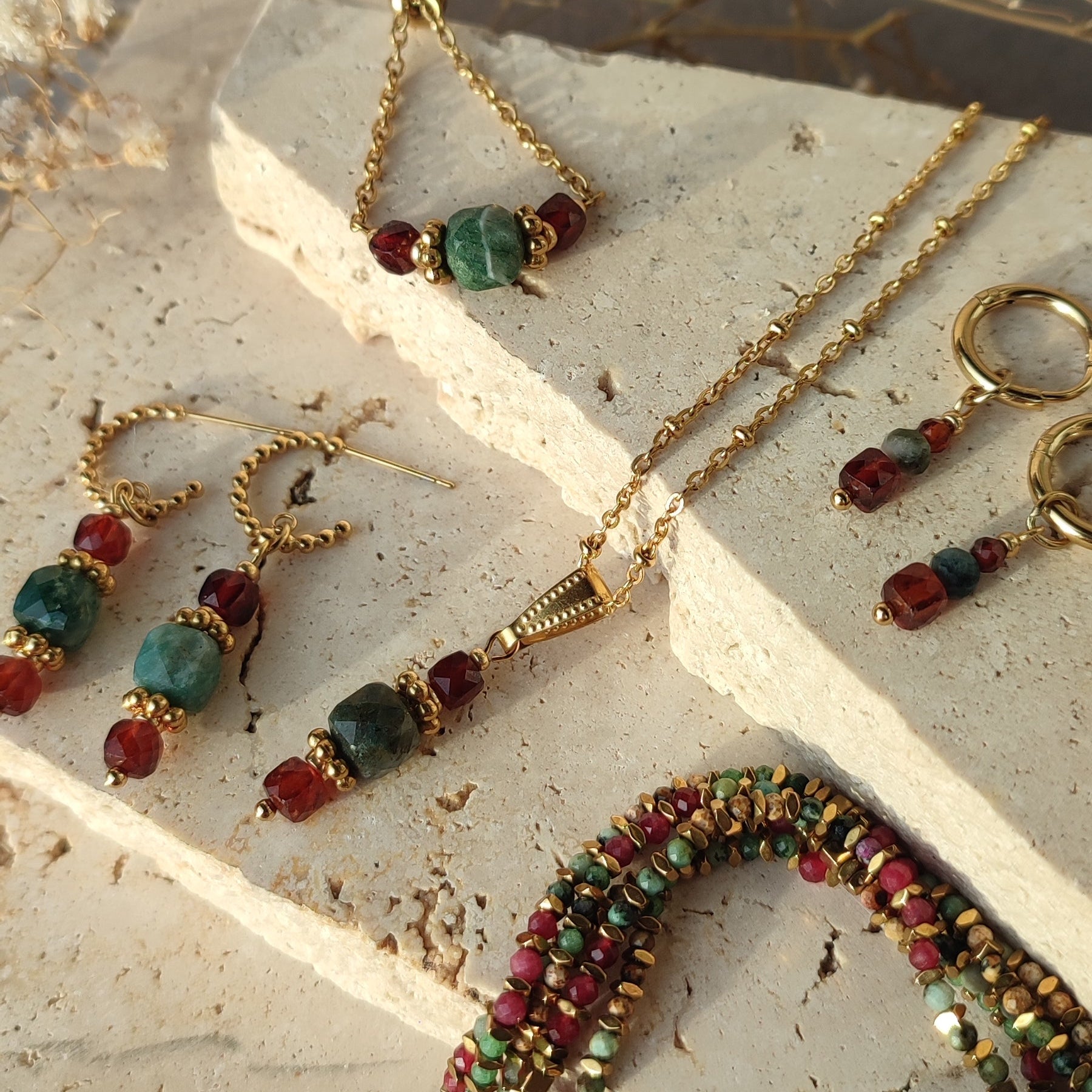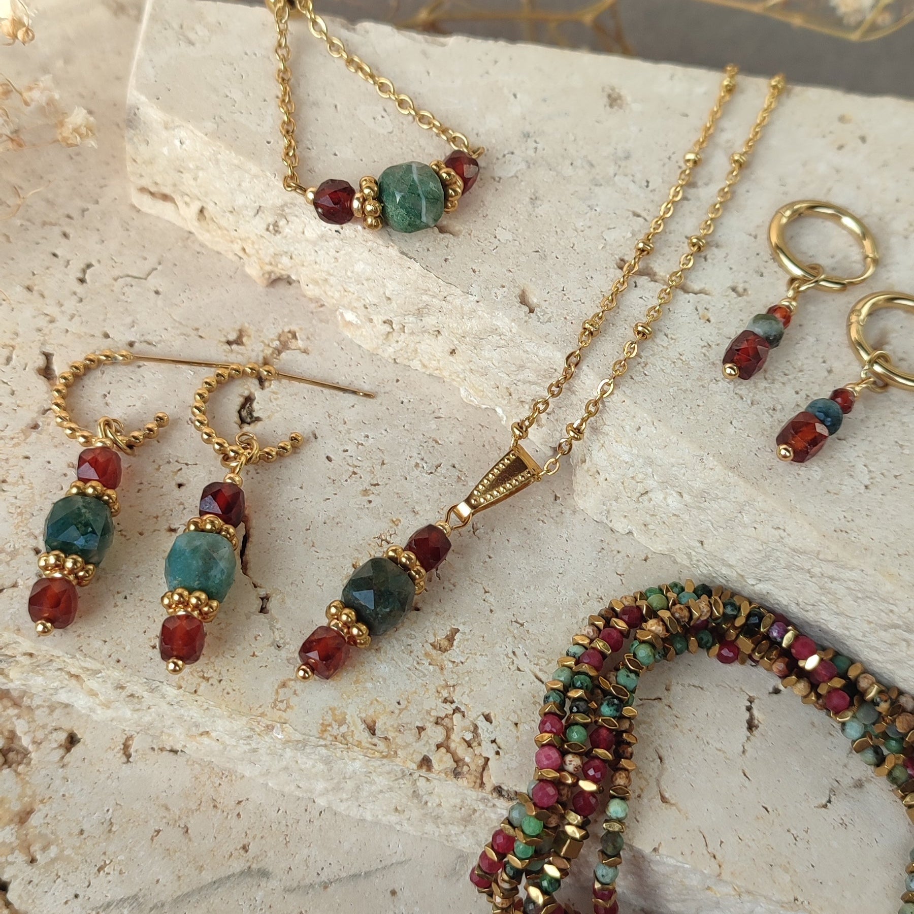 Pierres naturelles de grenat et d'agate mousse