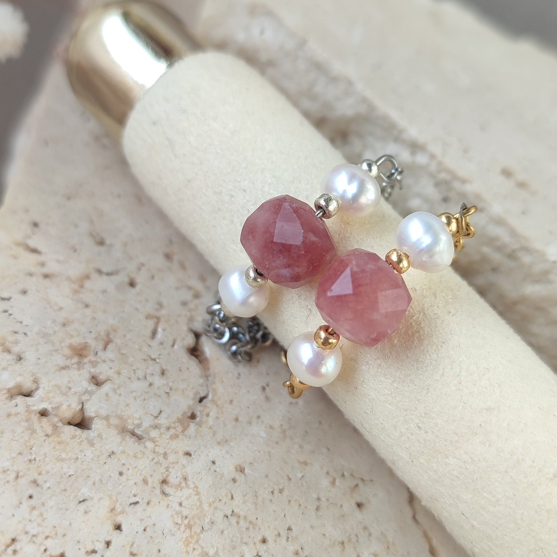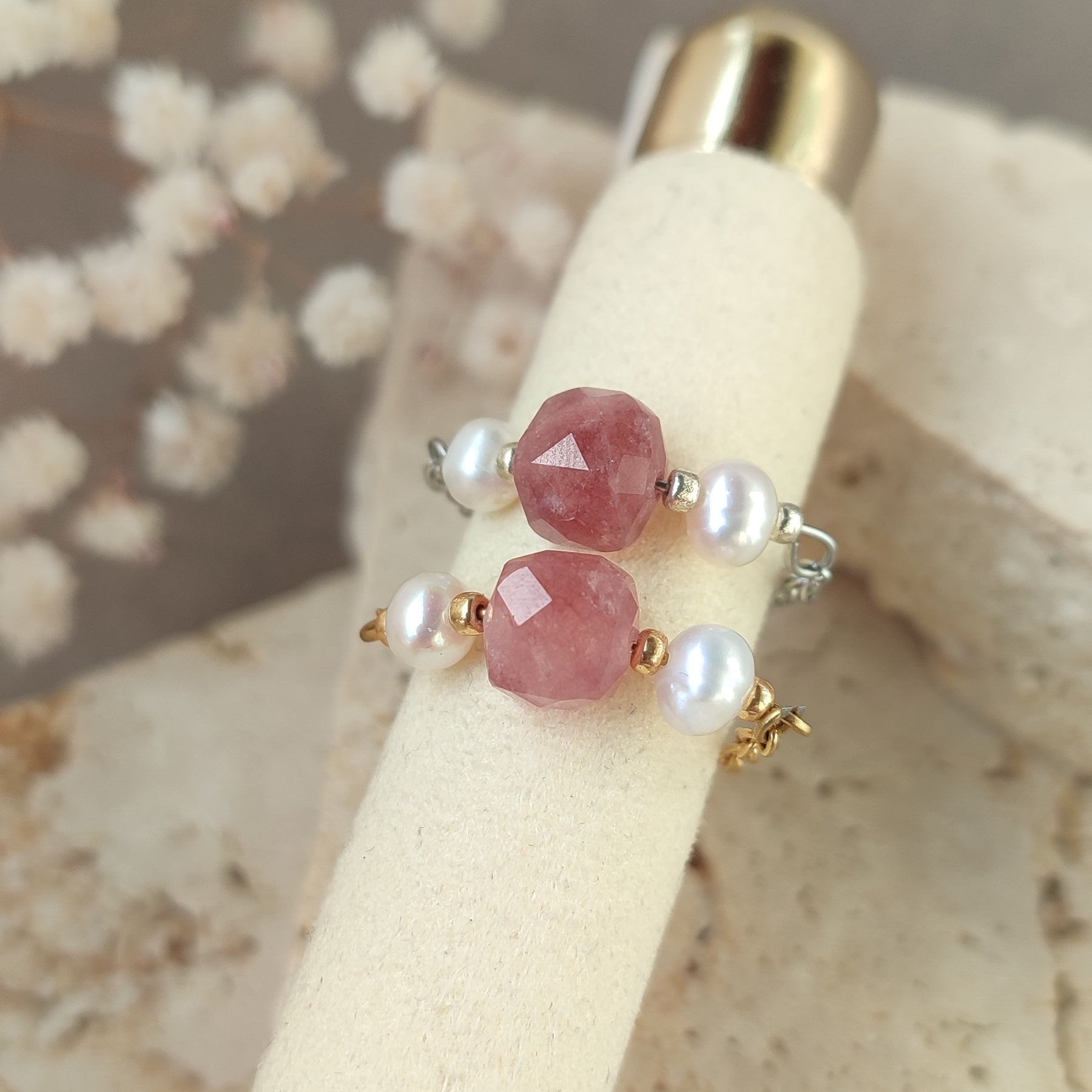 Pierres naturelles de quartz fraise et perles d'eau douce
