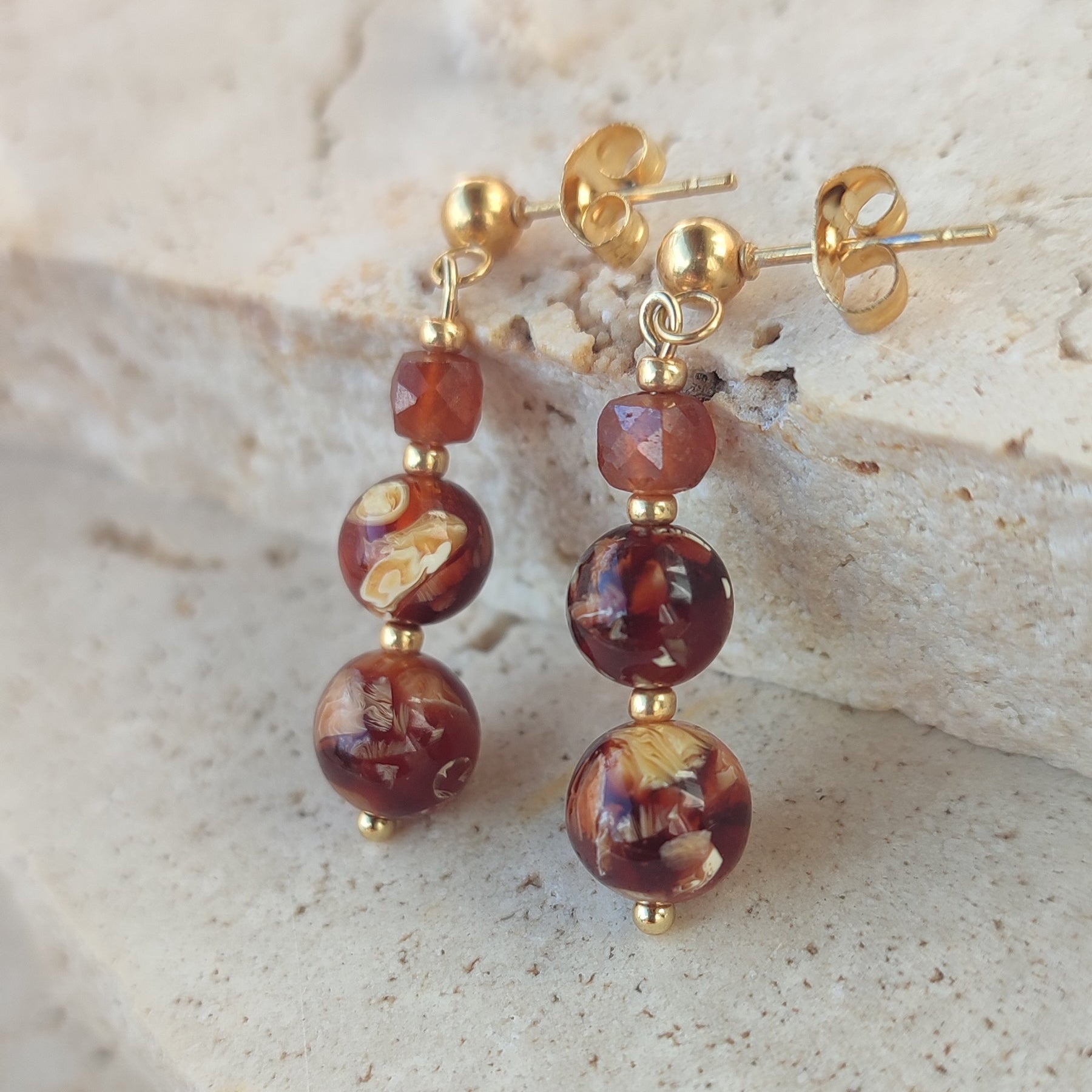 Perles rondes mélange ambre et nacre véritable et perles de grenat orange