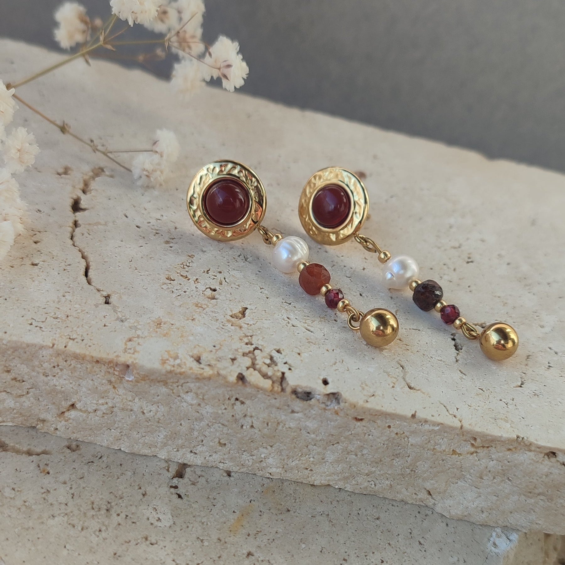 pierres naturelles de cornaline, grenat orange , grenat rouge et perle d'eau douce