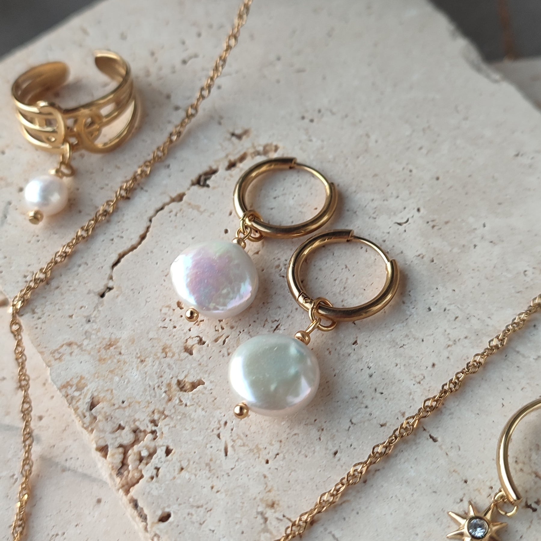Pendentif avec véritables perles d'eau douce ronde et plate d'environ 10 / 12mm