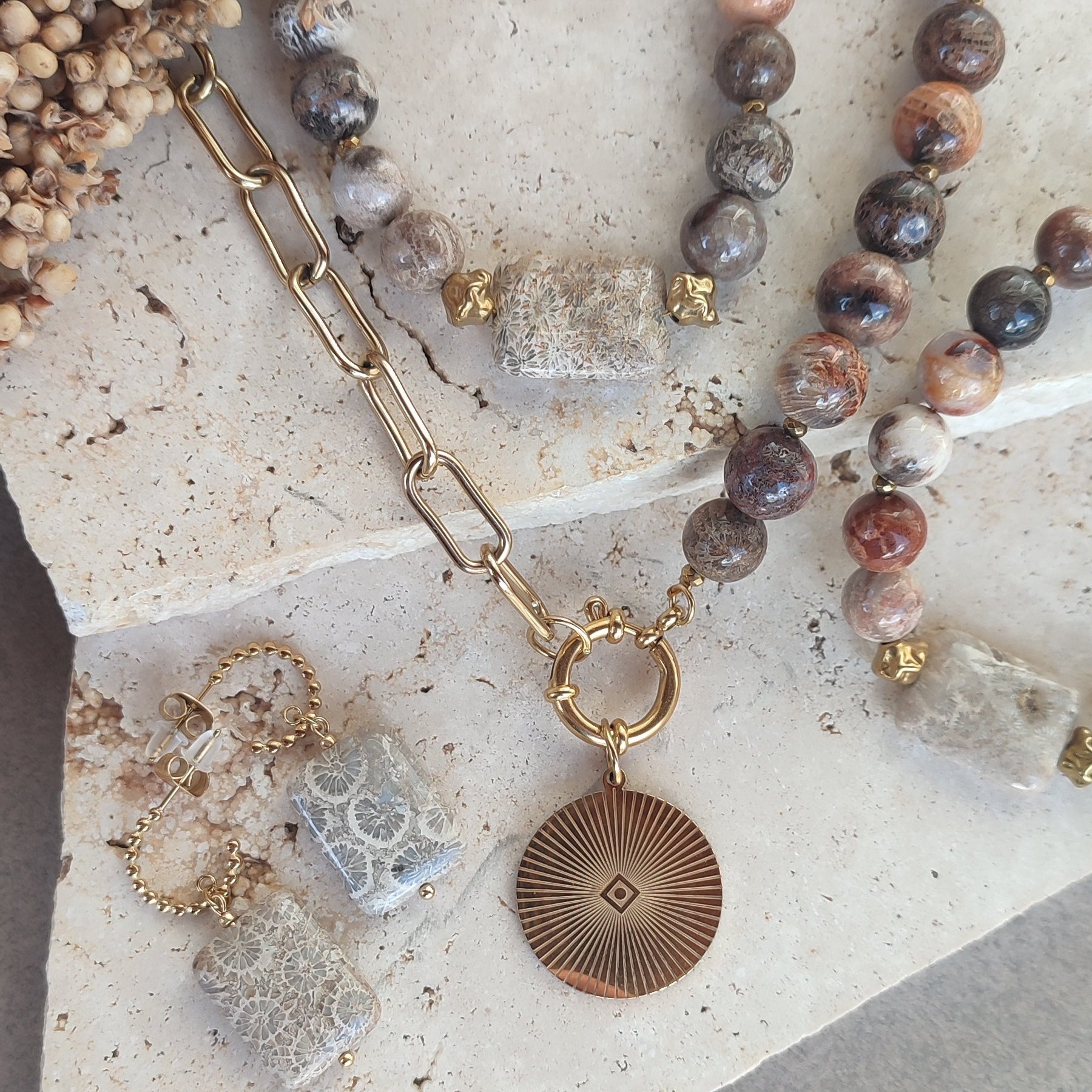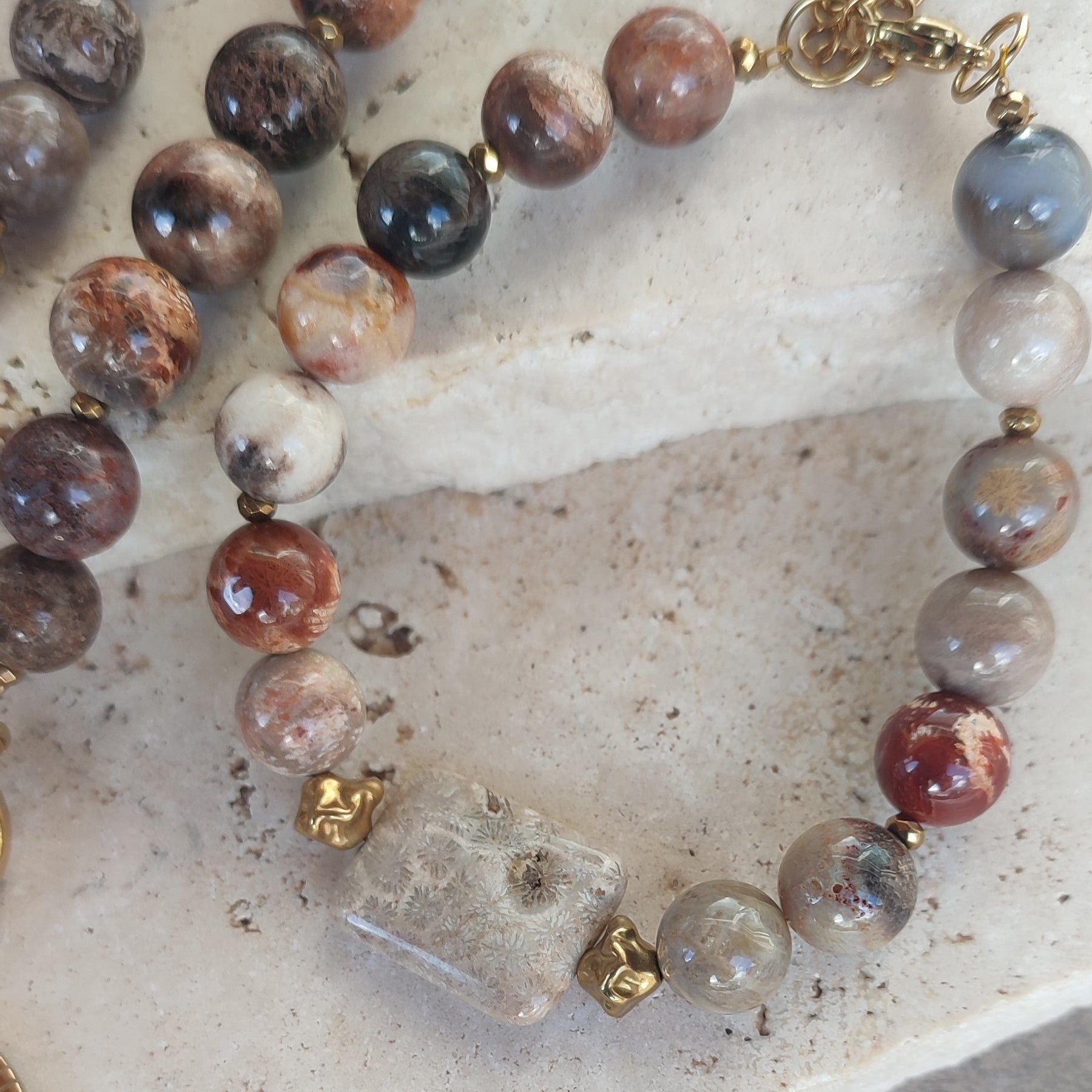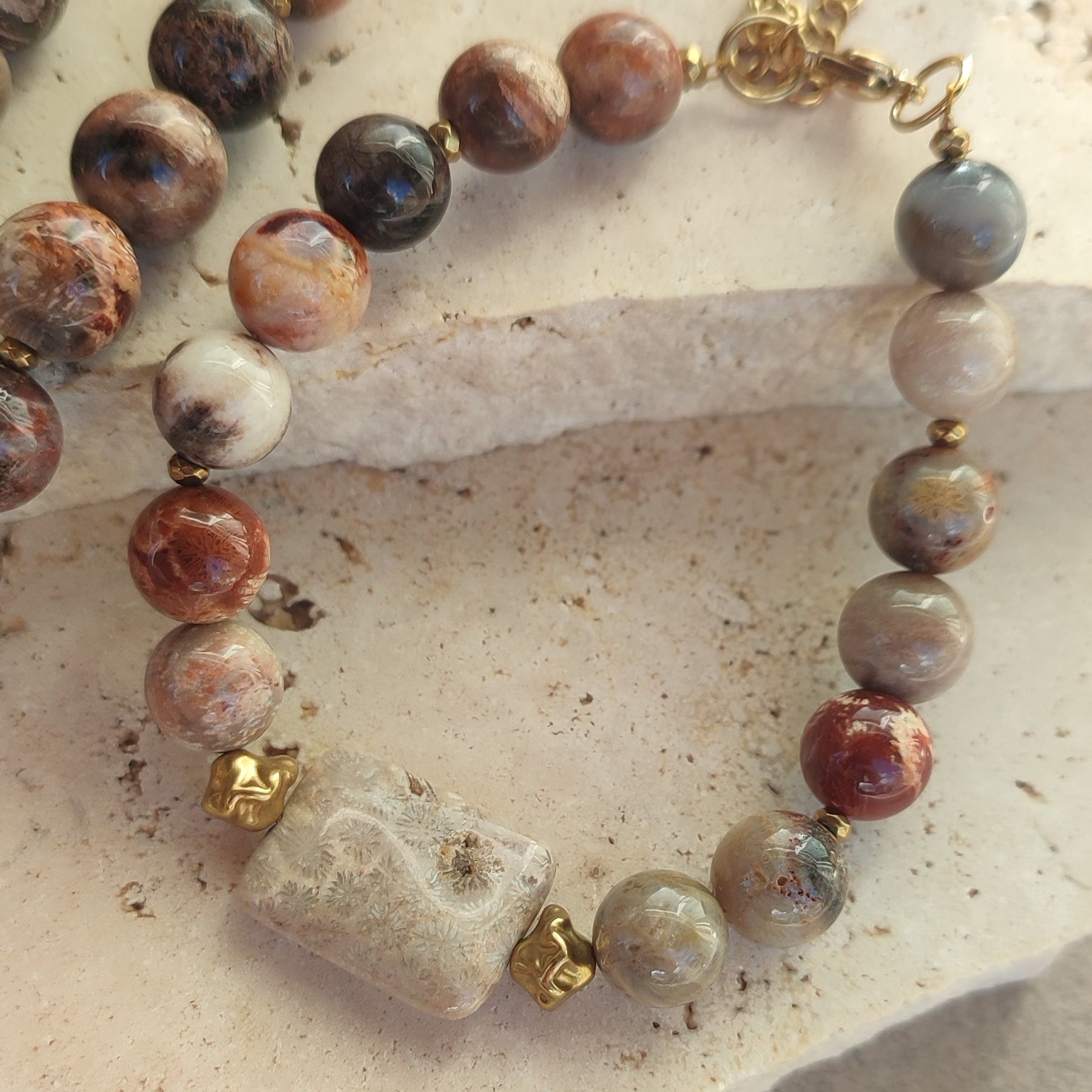 Chaque bracelet est réalisé à la main avec une sélection exigeante de pierres aux nuances délicates et aux marbrures naturelles uniques. Aucun modèle ne ressemble parfaitement à un autre — vous portez une pièce singulière.