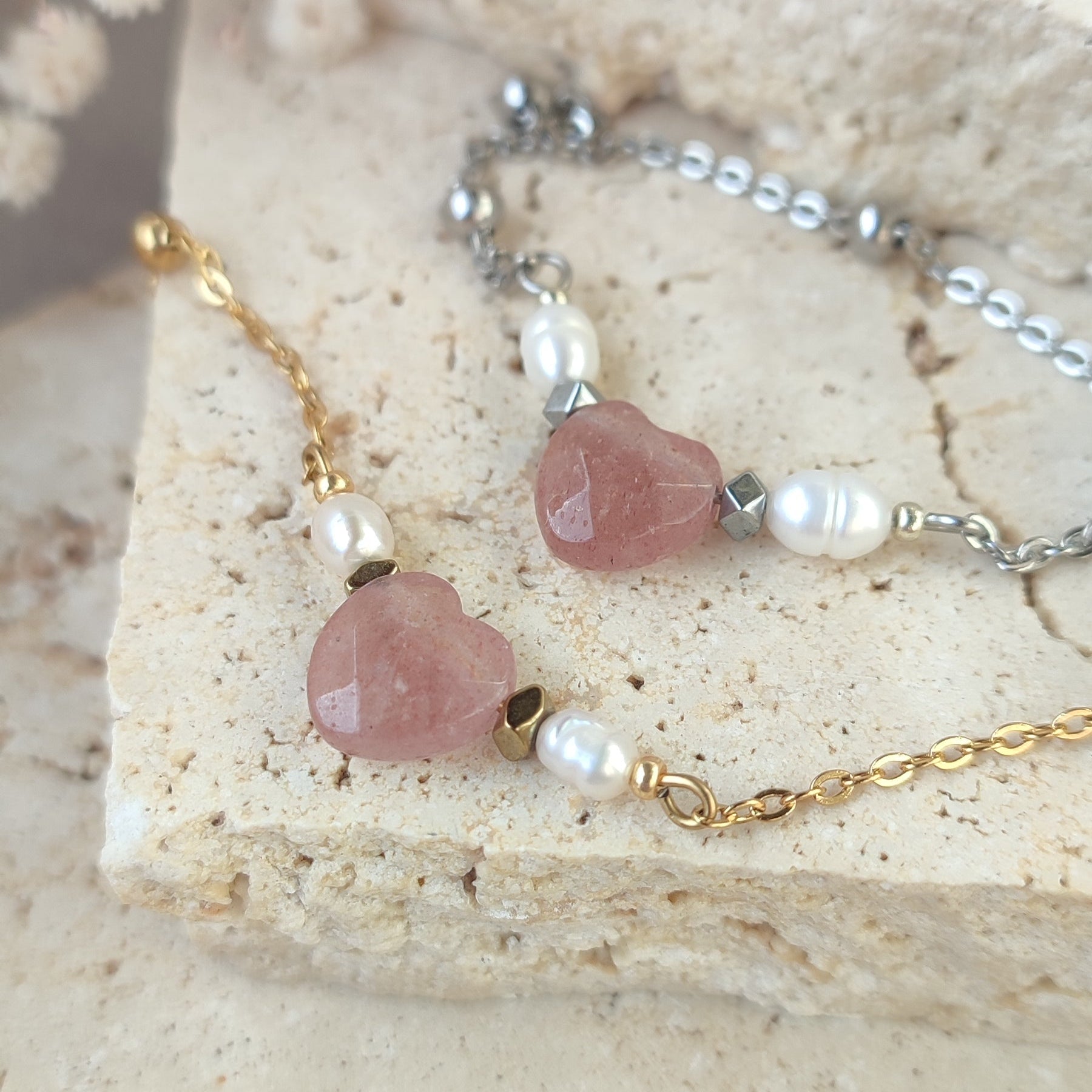 Pierres naturelles de quartz fraise et perles d'eau douce