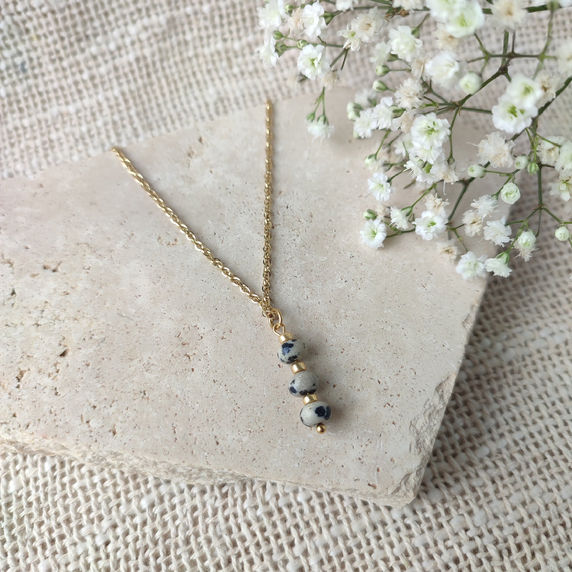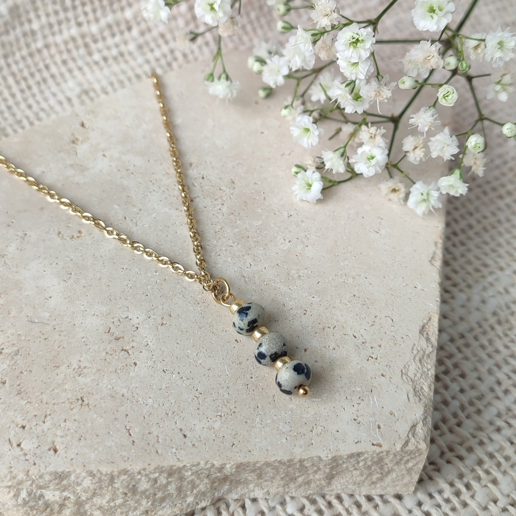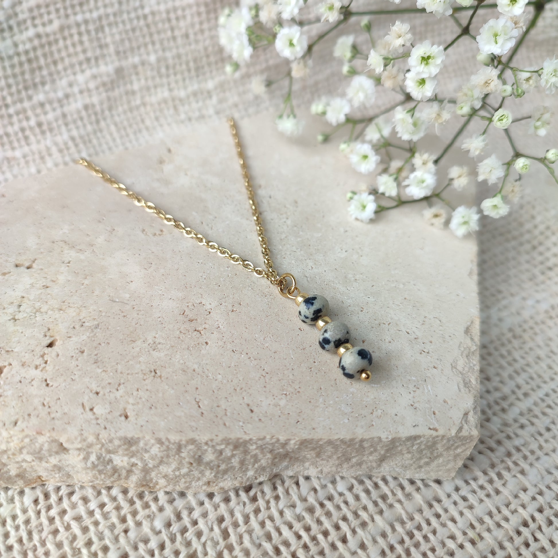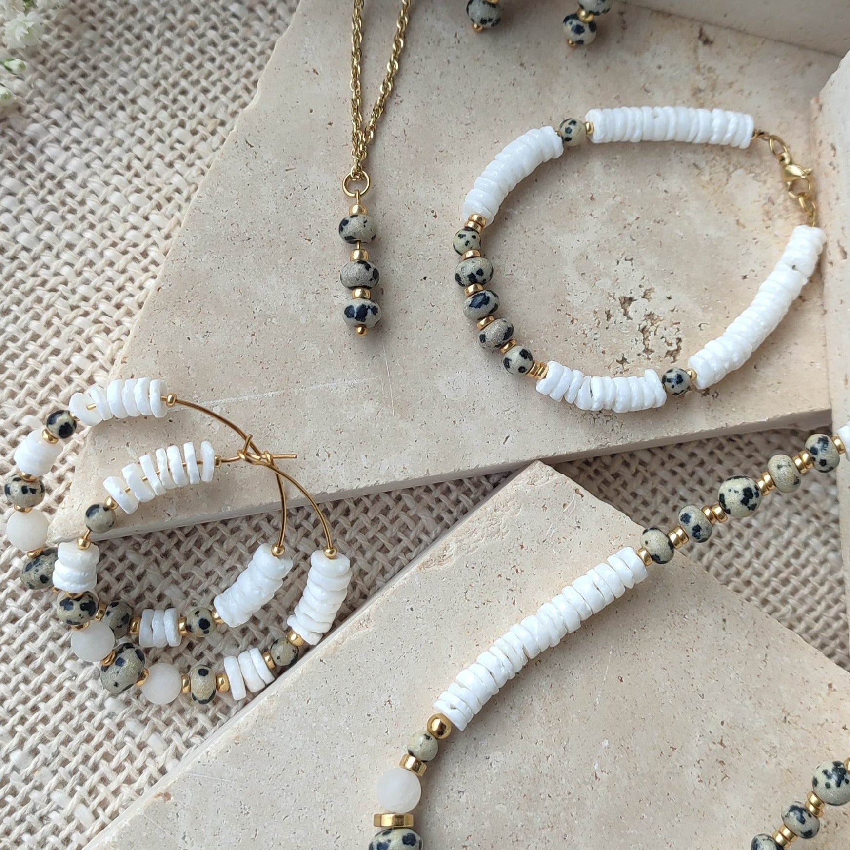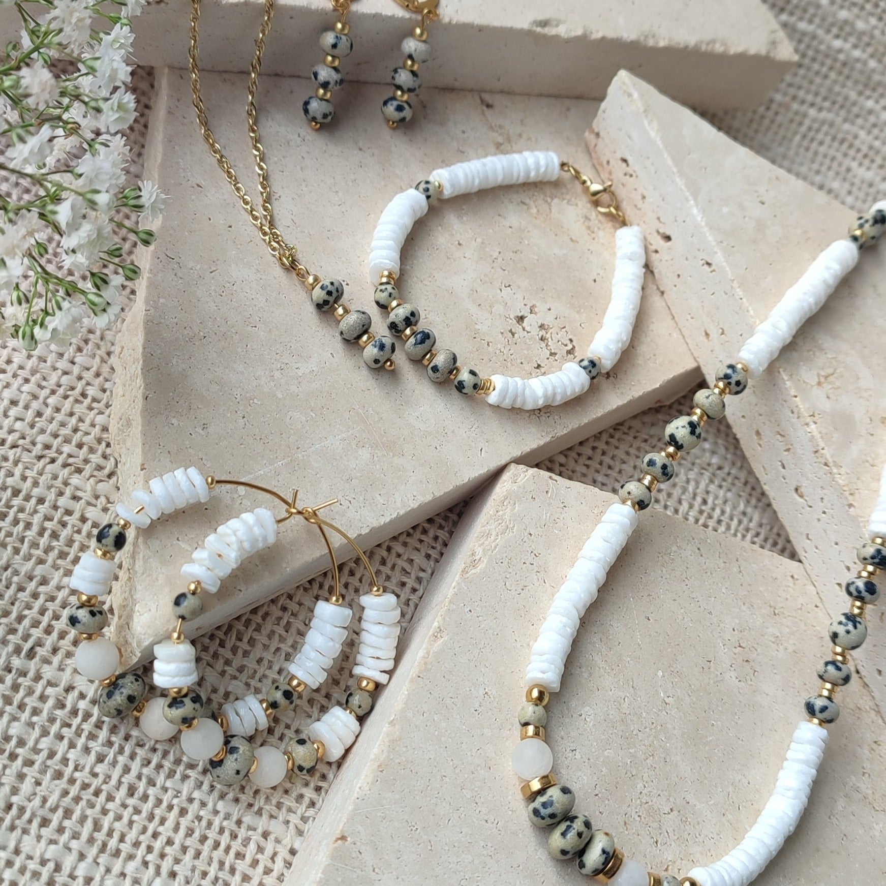 Agrémenté de pierres naturelles de jaspe dalmatien, chaque pièce est unique
