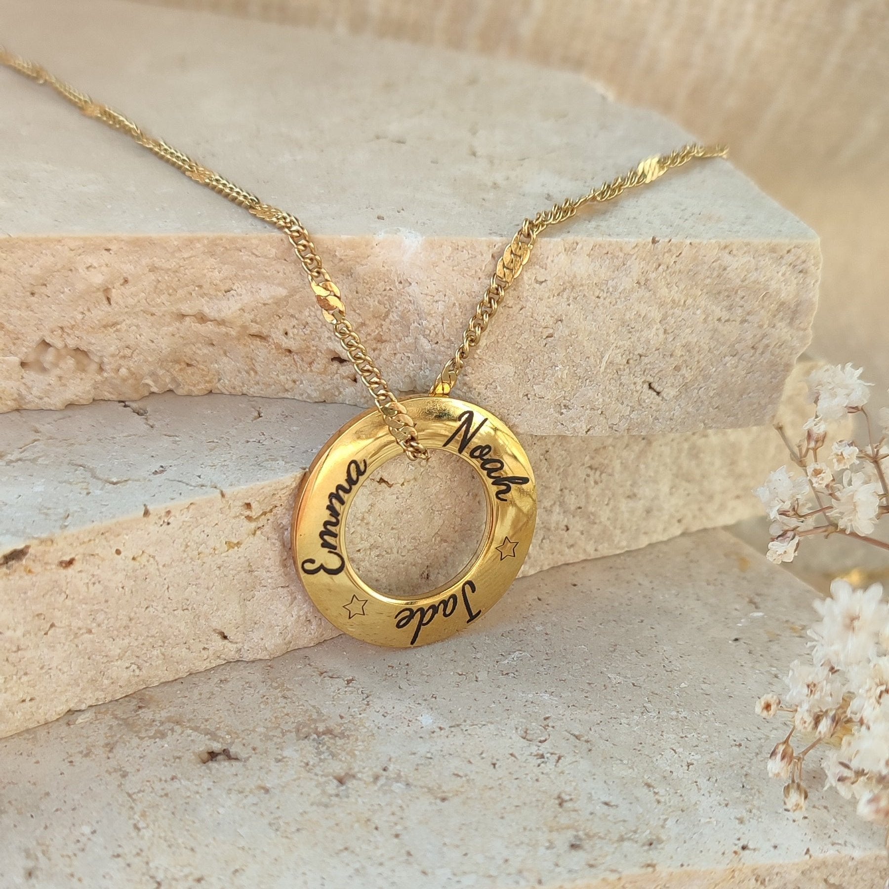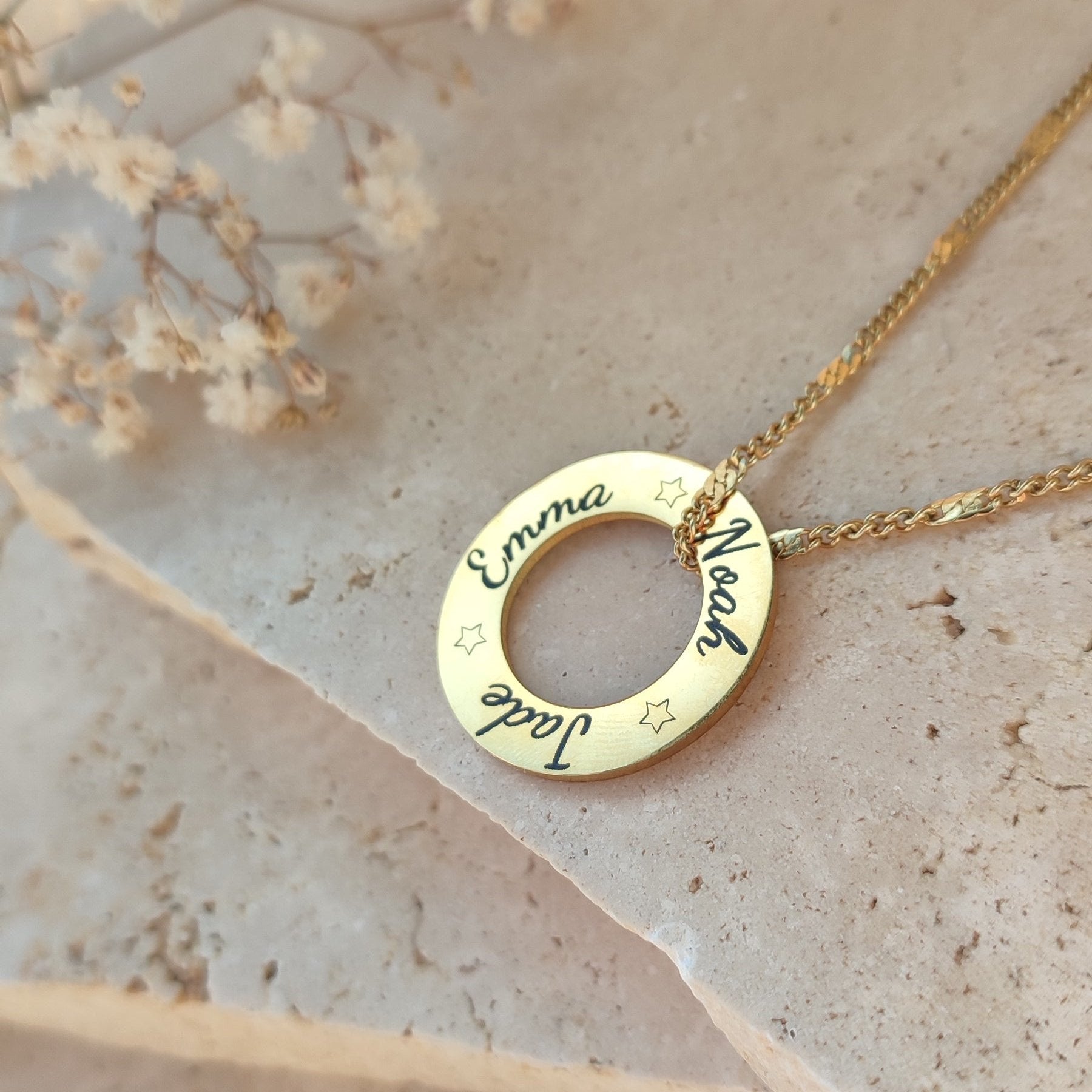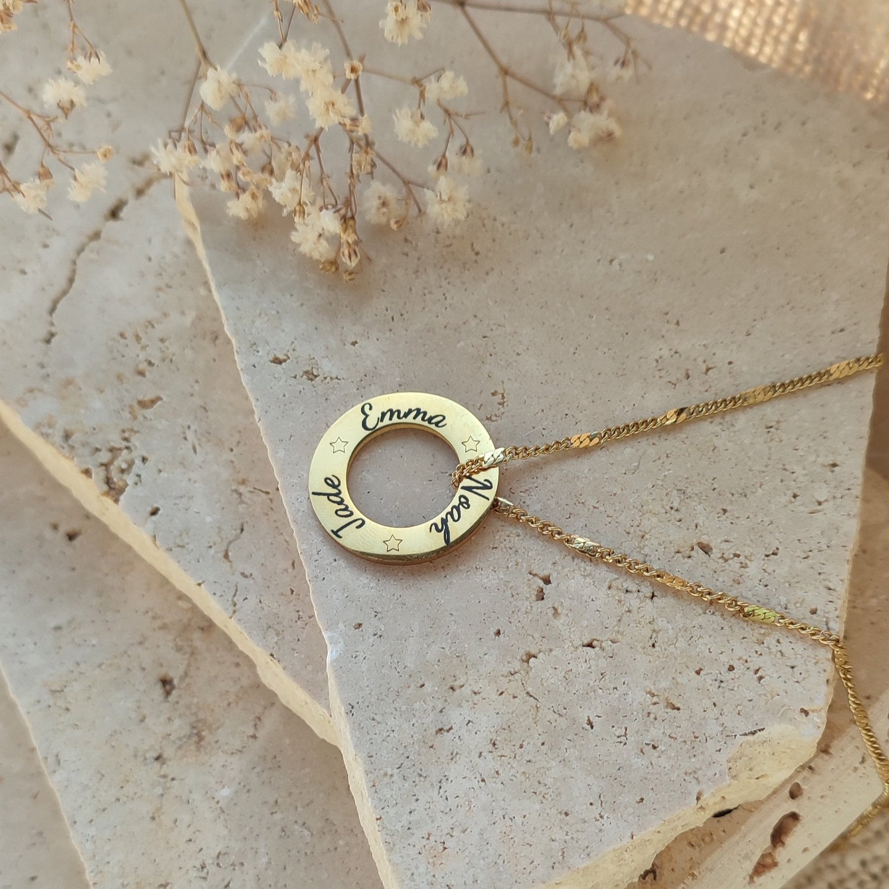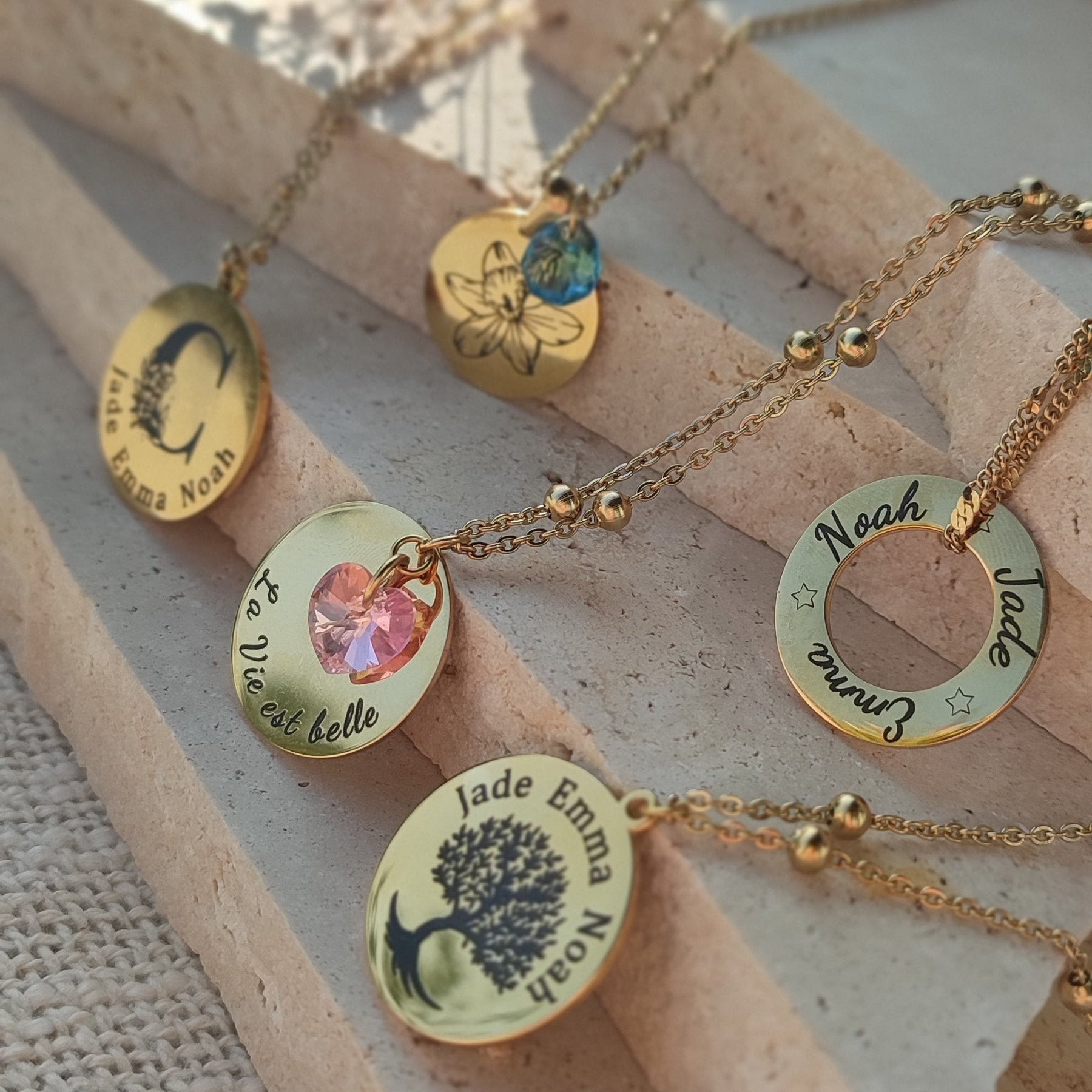 Découvrez notre collier à graver Jenna : Création, un bijou unique assemblé à la main en acier inoxydable.