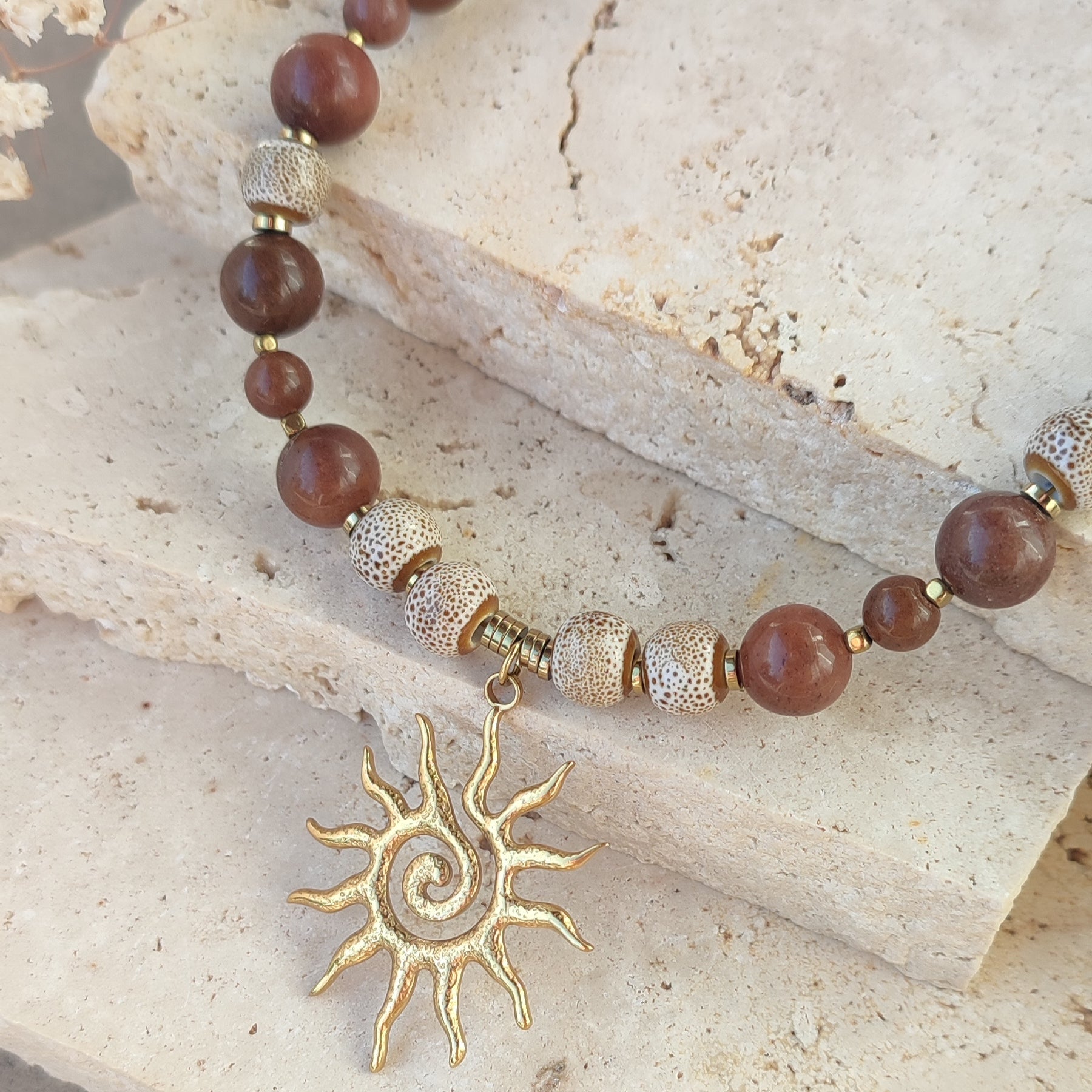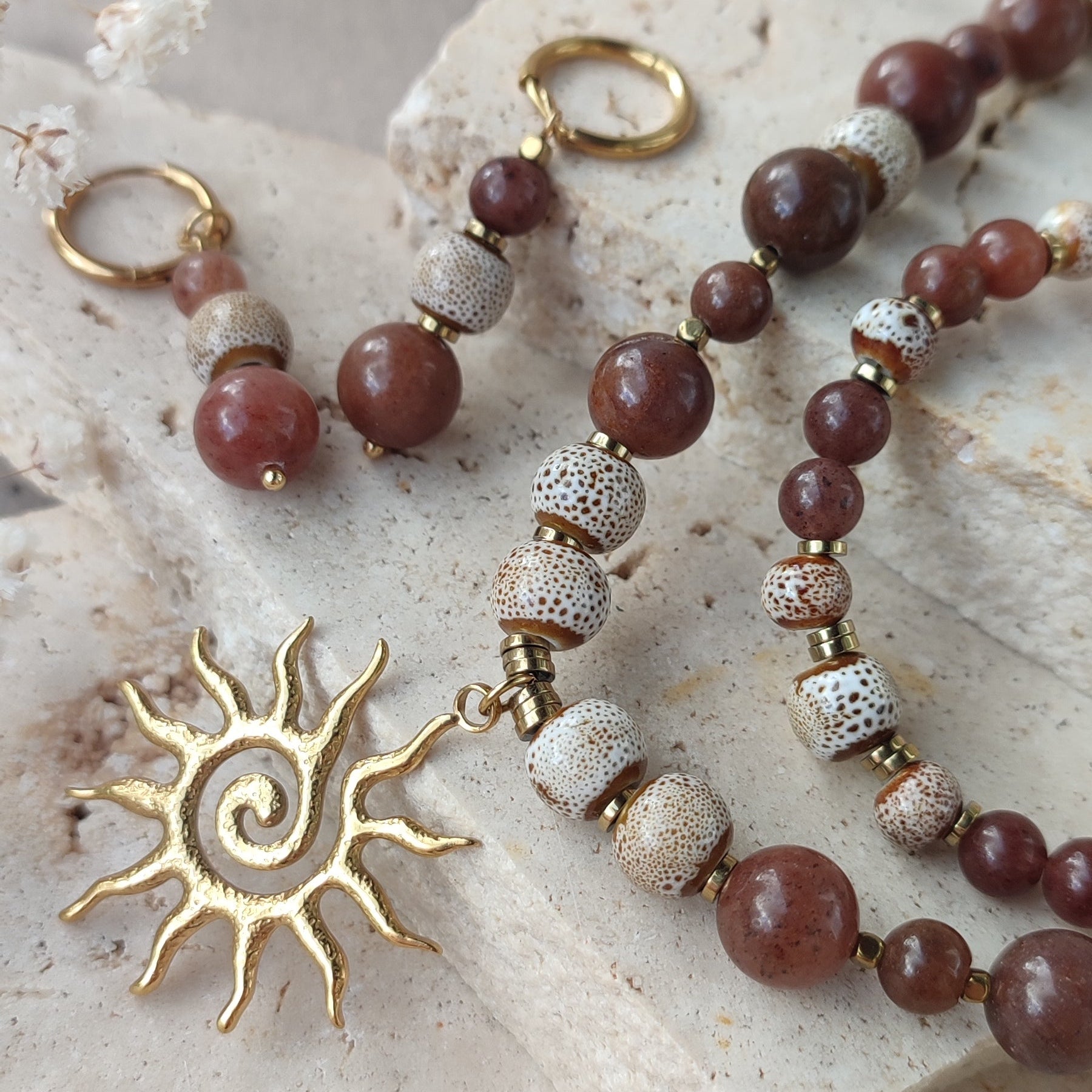 Pierres naturelles d'aventurine poupre et perles en céramique