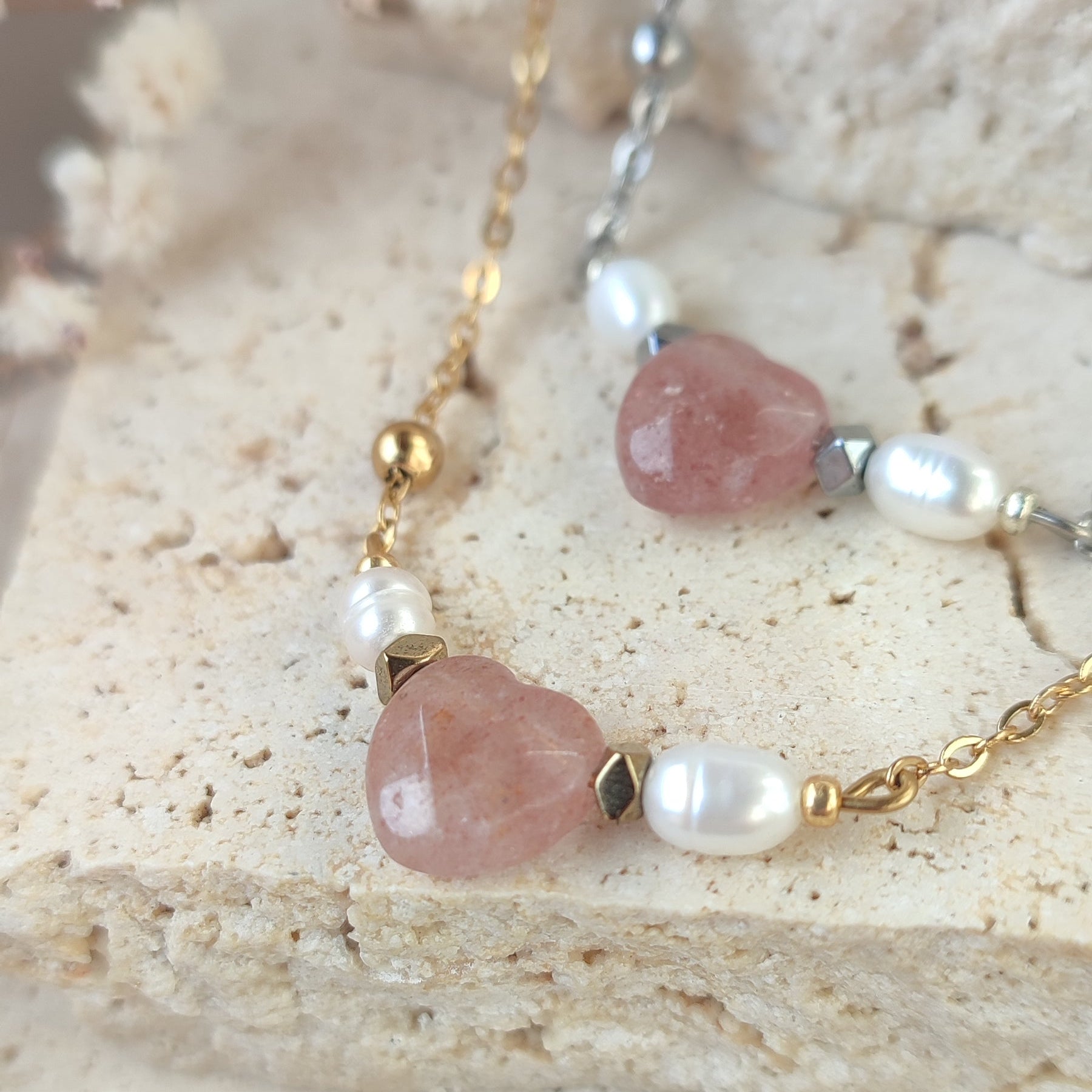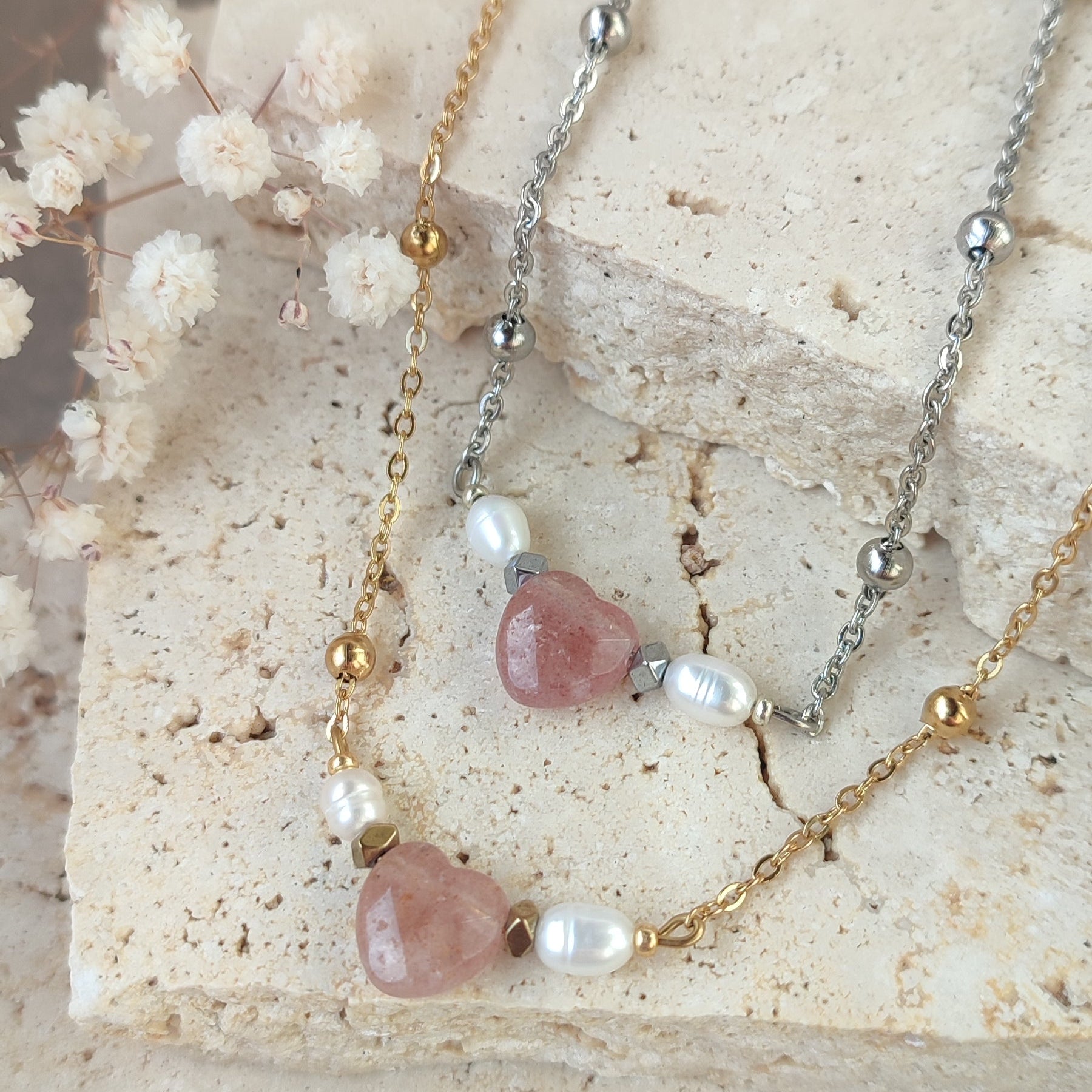 Pierres naturelles de quartz fraise et perles d'eau douce